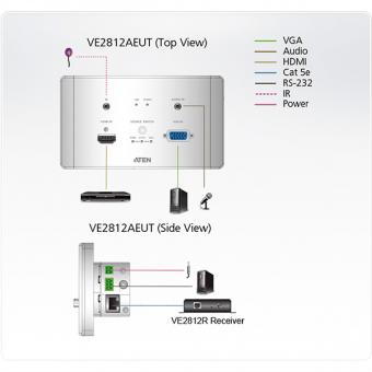 VE2812AEUT HDMI + VGA HDBaseT Transmitter EU Wandplatte