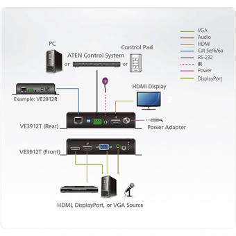 VE3912T DP/HDMI/VGA Switch HDBaseT Extender