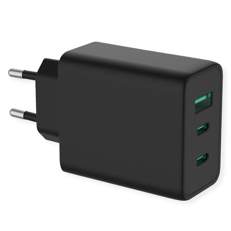 USB Charger mit Euro-Stecker, 3-Port (Typ-A, 2x Typ-C), 65W, GaN