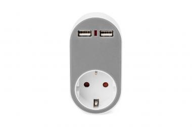 Universal Steckdosenadapter mit 2 x USB-A
