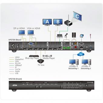 VP2730 7 x 3 Seamless Präsentation Matrix Switch mit Scaler, Streaming, Aud