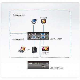VS0102, VGA Video-Splitter, 450MHz, Audio, RS232, 2-fach