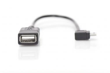 USB 2.0 Adapterkabel, OTG, Typ micro B - A St/Bu, 0.15m, USB 2.0 konform, rechts gewinkelt,sw
