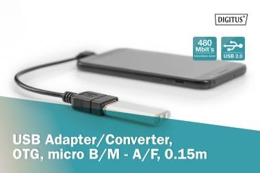 USB Adapter / Konverter, OTG, micro B/St - A/Bu, 0,15m