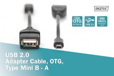 USB 2.0 Adapterkabel, OTG, Typ mini B - A St/Bu, 0,2m, USB 2.0 konform, sw