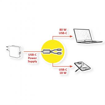 USB Typ C Split-Ladekabel, C - 2x C, ST/ST, max. 100W, schwarz, 1,85m