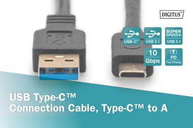 USB Typ C Verbindungskabel, Typ C auf A St/St, 1.0m, Gen2, 3A, 10GB, 3.1 Version, sw