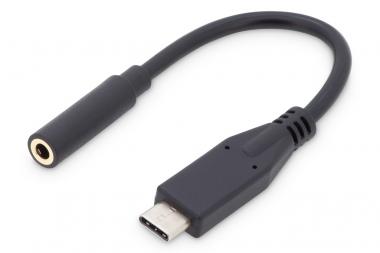 USB Type-C Audio Adapterkabel, Type-C - 3.5mm St/Bu, 0.2m, Audio in/out, Version 3.1, sw