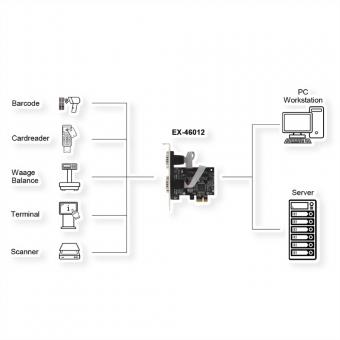 EX-46012 2S Seriell RS-232 PCIe Karte