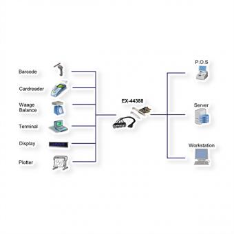 PCI Express Karte 8x, seriell RS-232, Kabel mit 8x 9pin Stecker