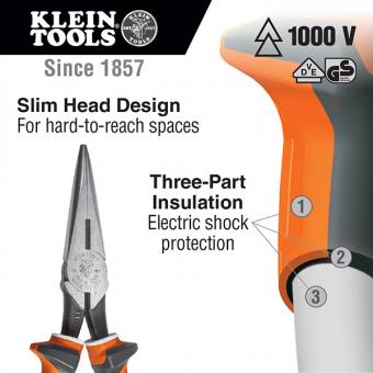 Isolierte Spitzzange mit Seitenschneider, schmal, 187mm, 2037EINS