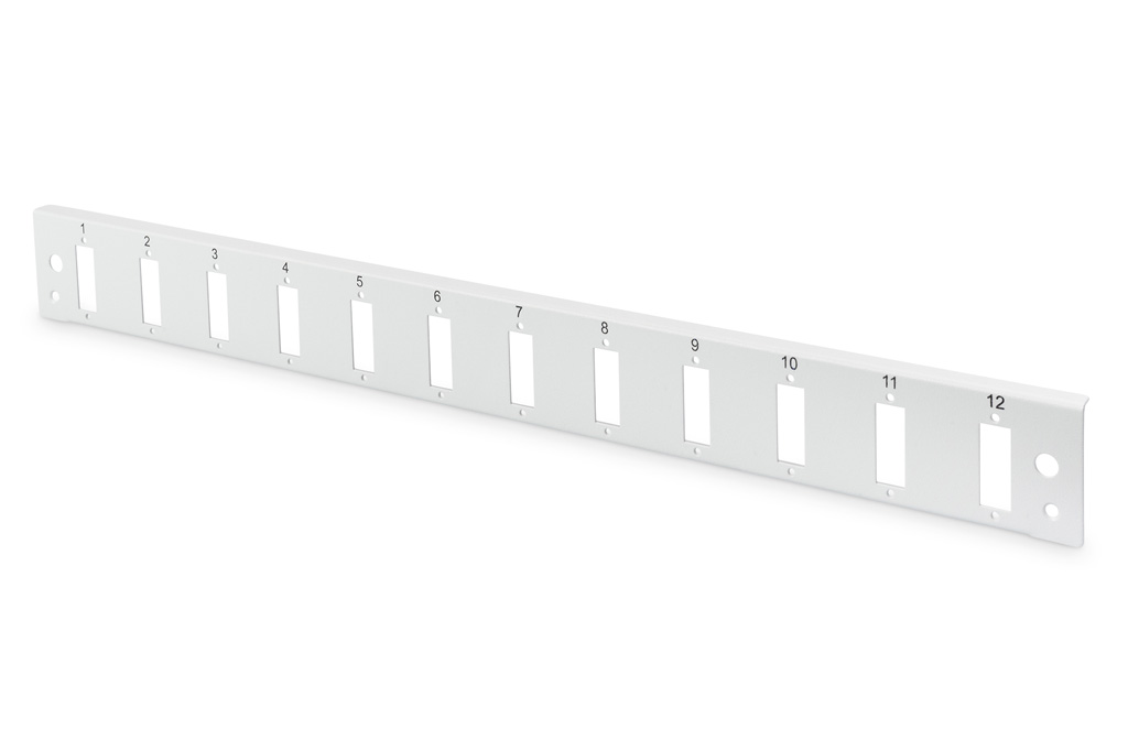 LWL Frontblende, 1HE, Schnellverschluss, 12x SC DX vertikal, Farbe Grau (RAL 7035)