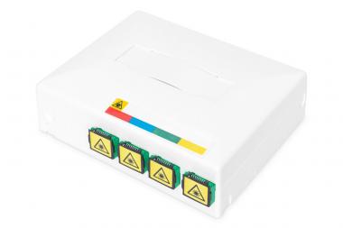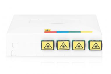 FTTH Gehäuse mit 4x SC (APC) SX Adapter Wand und DIN-Schienenmontage