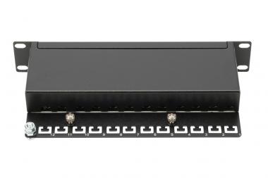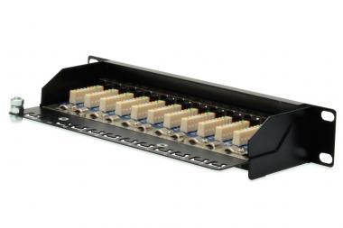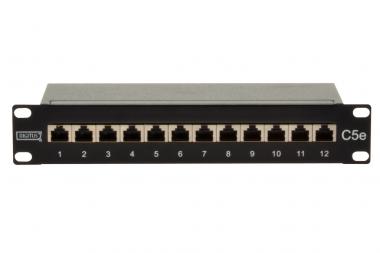 CAT 5e,Klasse D Patch Panel,geschirmt,12-Port RJ45 8P8C, LSA,1HE,254mm(10-Zoll)Rack Mount, sw RAL 9005