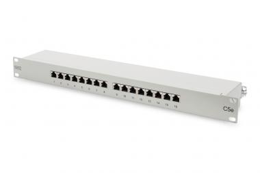 CAT 5e, Class D Patch Panel, geschirmt, 16-Port RJ45, 8P8C, LSA, 1HE, Rack Mount, grau, 482x44x109
