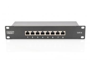 CAT 6, Klasse E Patch Panel,geschirmt,8-Port RJ45 8P8C, LSA, 1HE, 254mm(10-Zoll)Rack Mount, schwarz