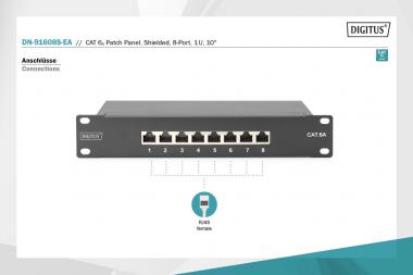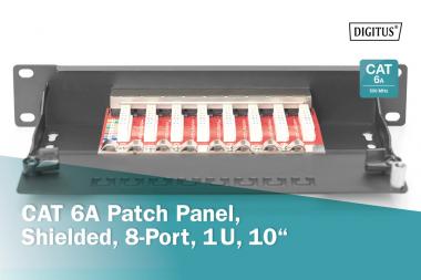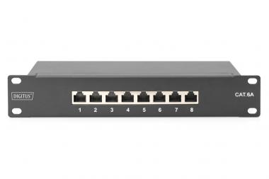 CAT 6A Patch Panel, geschirmt,8-Port 1HE, 10-Zoll, Rack Mount,schwarz RAL 9005