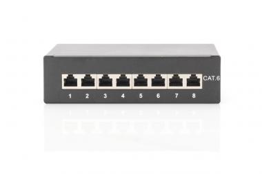 Desktop CAT 6 Patch Panel, geschirmt Klasse E, 8-Port RJ45, 8P8C, LSA, Schwarz RAL 9005