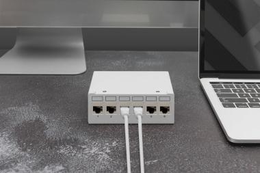 Modular Desktop Patch Panel, geschirmt 6-Port, Lichtgrau