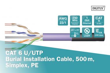 Cat.6 U/UTP Erdverlegekabel, 500m, simplex, PE