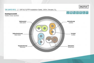 CAT 8.2 S/FTP Installationskabel, 100m, Simplex, Dca