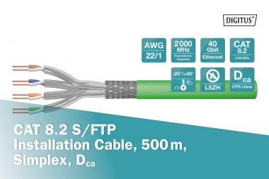 CAT 8.2 S/FTP Installationskabel, 500m, Simplex, Dca-s2,d1,a1