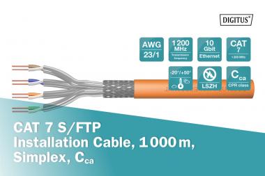 CAT 7 S-FTP Installationskabel, 1200MHz Cca (EN 50575), AWG 23/1, 1000m, simplex, orange