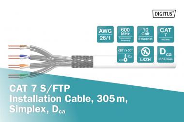 Cat.7 S/FTP Verlegekabel, 305m, simplex, Dca-s1a, d0, a1