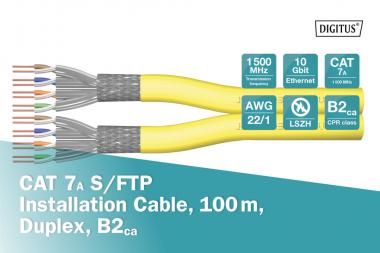 Cat.7A S/FTP Verlegekabel, 500 Meter, Duplex, B2ca