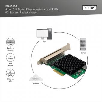 4-Port 2,5 GBit Netzwerkkarte, RJ45, PCI Express, Realtek Chipsatz