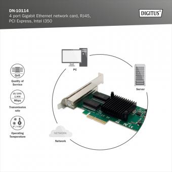 Die DN-10114 Netzwerkkarte mit 4 Ports ist die perfekte Lösung für alle, die eine zuverlässige und leistungsstarke Gigabit Ethernet Verbindung benötigen. Mit innovativen Power Management-Funktionen wie Energy Efficient Ethernet (EEE) und DMA Coalescing ist sie besonders effizient und spart Energie.