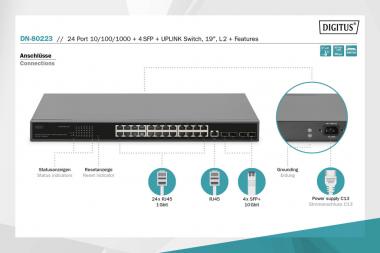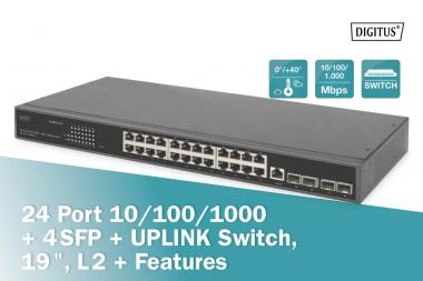 19" 24 Port 10/100/1000 Switch + 4 SFP+ UPLINK Ports , L2+ Funktionen
