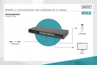 Der Digitus DN-80223 ist mit seinen 24 Gigabit-RJ45-Port und vier unabhängige SFP + Glasfaser-Modul-Erweiterungssteckplatz optimal geeignet um Lokale Netzwerke an Datencenter anzubinden.ausgestattet mit 4 * 10G SFP+ Steckplatz, flexibel erweitern Sie Ihr Netzwerk. Der 10G Uplink Switch bietet eine hohe Leistung, Enterprise QoS, erweiterte Sicherheitsrichtlinien und umfangreiche Layer-2+-Management-Funktionen. Mit all diesen fortschrittlichen Funktionen ist der Switch leistungsfähig und flexibel genug, um nahezu allen IT Ansprüchen gerecht zu werden.
