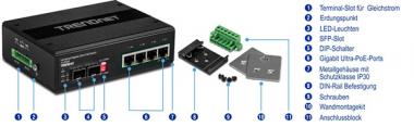 6-Port Industrie Gigabit Switch, Ultra PoE, DIN-Rail