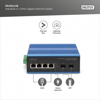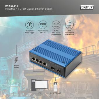 Industrieller 4+2 -Port Gigabit Ethernet Switch 4 Port GE RJ 54, 2 GE SFP Port