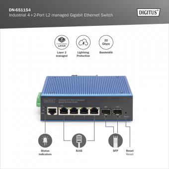 Industrial 4+2 -Port L2 managed Gigabit Switch