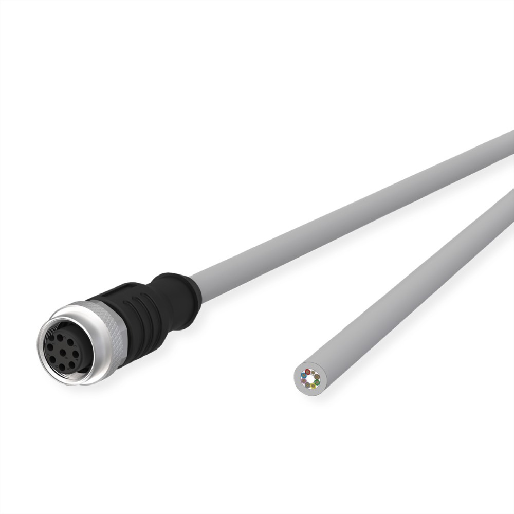 M12 Sensor-/Aktorleitung, A-kodiert, M12 Buchse gerade, freies Leitungsende, grau, 2m
