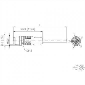Sensor-/Aktorltg., M12-ST A-kodiert, gerade-freies Ende, ungeschirmt, 5polig, PUR, 1m