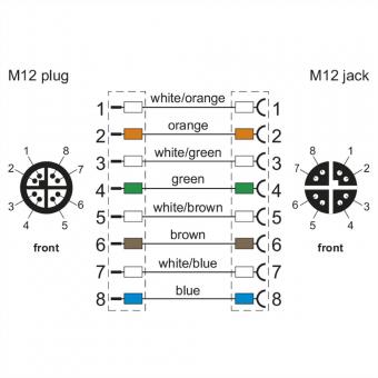 Verbindungsleitung M12 BU-M12 ST, 8-pol X-kodiert, gerade-gerade, 5m