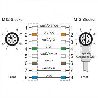 Verbindungsleitung M12 ST-M12 ST, 8-pol X-kodiert, gerade-gewinkelt, 2m