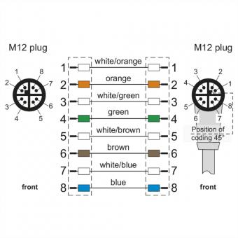 Verbindungsleitung M12 ST-M12 ST, 8polig, X-kodiert, gerade-gewinkelt, 2m
