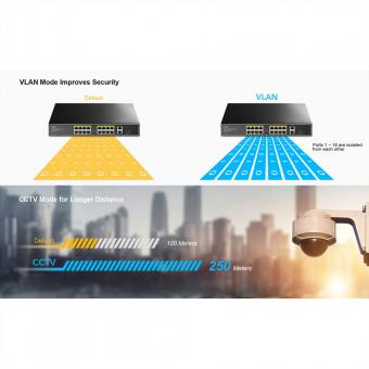 FS1018PS1 16-Port 10/100M PoE+ Switch 2 Gigabit Uplink 1 SFP Port 200W