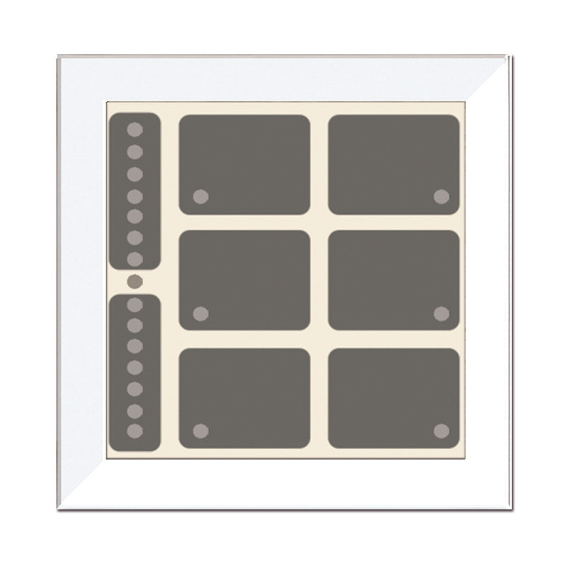 GT8 mit schmalem Rahmen, weiß, mit 6 + 2 Tasten, 6 LEDs, BarGraph LED, integr. TS