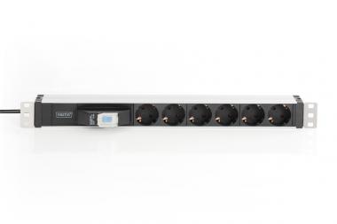 1HE Aluminium Steckdosenleiste, Rack Mount, 6x Schutzkontakt, 16A, 4000W, 250VAC 50/60Hz,