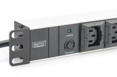 1HE Aluminium PDU, Rack Mount, Überlastschutz 230 Vac, 10A, Eingang: IEC60320 C14, Ausgang: 10 x IEC60320 C13