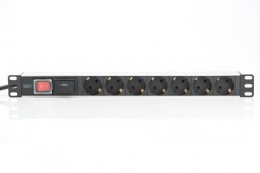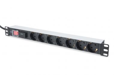 1HE Aluminium Steckdosenleiste, Rack Mount, 16A Plug, 250VAC 50/60Hz, 7-fach, mit Schalter