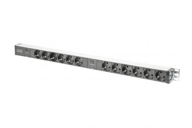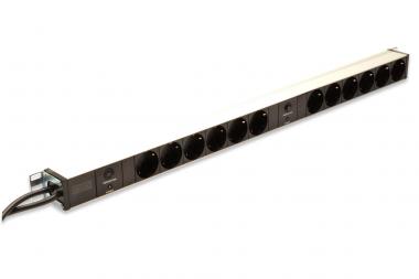 Aluminium PDU, Rack Mount, 12x Schutzkontakt 2x 16A, 250VAC 50/60Hz, Überlastschutz