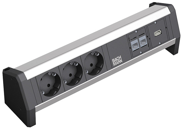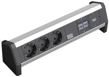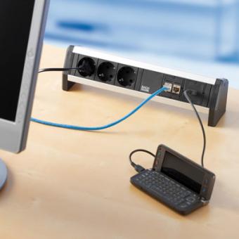 DESK 1, Steckdoseneinheit, 3x Schuko, 2x Kat. 5e, 1x USB