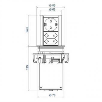 ELEVATOR mit 1x Schutzkontakt, 1x Kat. 6, 1x USB3.0