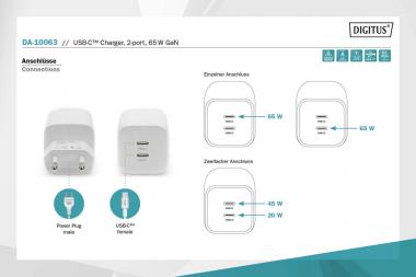 USB-C Mini Ladegerät, 2-Port, 65W 2x USB-C, 45W+20W, weiß